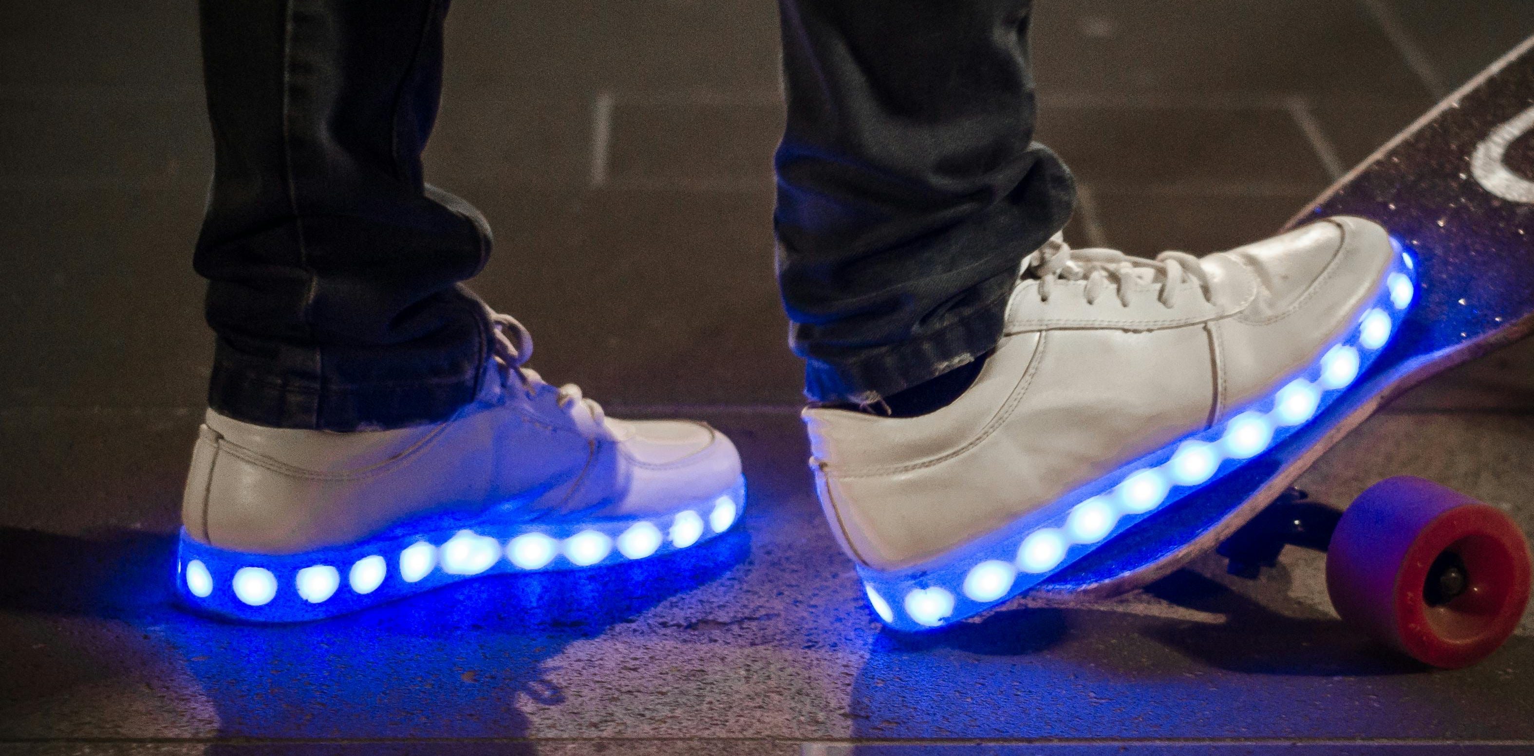 You know those marvelous kids shoes that light up when you walk around in them? They have little LEDs that light up, with a battery, and a few sensors that convert footsteps taken into beautiful light patterns. If you’re a parent, they’re incredibly handy to have, especially if you‘ve got a child who’s prone to wandering off into the distance at night.